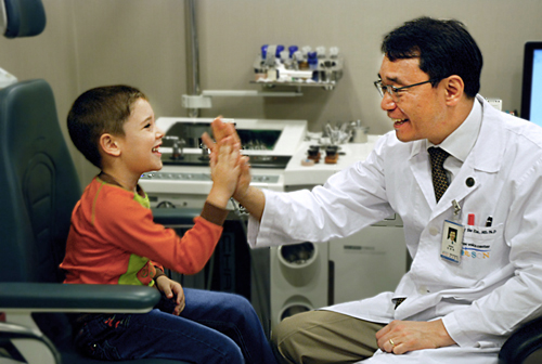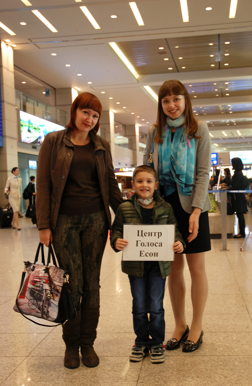 .jpg) 약 4년 동안 목소리없이 살았던 5살 우크라이나 소년, 예고르의 2014 하반기 예송 러시아 나눔 의료 프로젝트가 성공리에 마쳤습니다. 우크라이나에서 온 예고르(Yegor Moskalenko, 5세 남)는 러시아나 중국 등에서는 계속되는 재발로 난치성 질환으로 잘 알려진 소아형 후두유두종을 생후 9개월 때 진단받았습니다. 소아형 후두유두종으로 2살 때부터 자가(自家)호흡이 어려워 기관절개술로 기도에 삽입한 관(tube)으로 최근까지 호흡해왔었습니다. 반복되는 재발로 러시아, 독일, 이스라엘 등의 해외대형병원에서 23번 넘게 수술을 받았습니다. 하지만, “이 병에는 완치가 없으니까 예고르는 평생 튜브로 숨을 쉴 거다.”라는 말 만 들었습니다. 그 동안 예고르는 목소리도 안 나와서 말을 제대로 못 배워서 잘 못해 예고르의 부모는 예고르의 목소리도, 희망도 잃고 있었습니다. 하지만, 지난해 2월 처음 예송이비인후과에서 미세후두수술과 PDL성대수술을 통해 후두유두종을 제거하고 2개월만 목소리가 나와 아들의 완치에 대한 희망을 되찾았습니다. 예송이비인후과에서의 첫 수술 후 재발 없이 완치 단계에 이르러 이번 나눔 의료를 통해서 기도 삽관으로 호흡했던 관(tube)또한 제거했습니다.