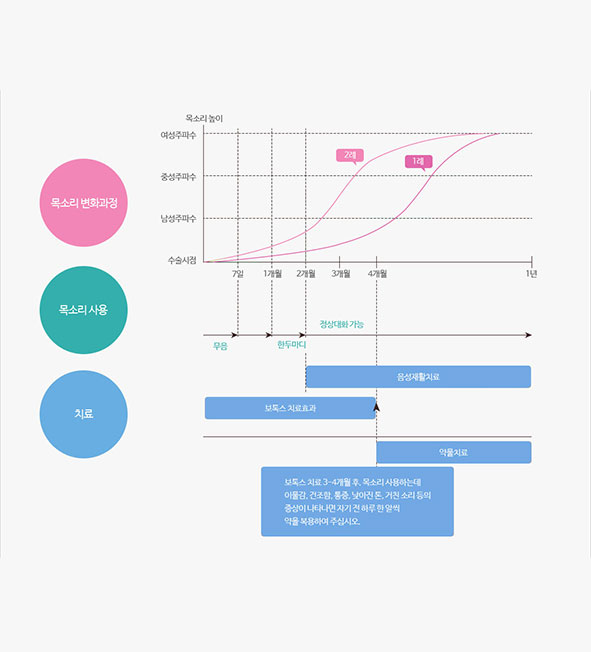 그러므로 음성여성화수술은 정확한 진단 아래 시술 경험이 많은 음성전문의에 의해 시술을 받으셔야 합니다.