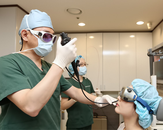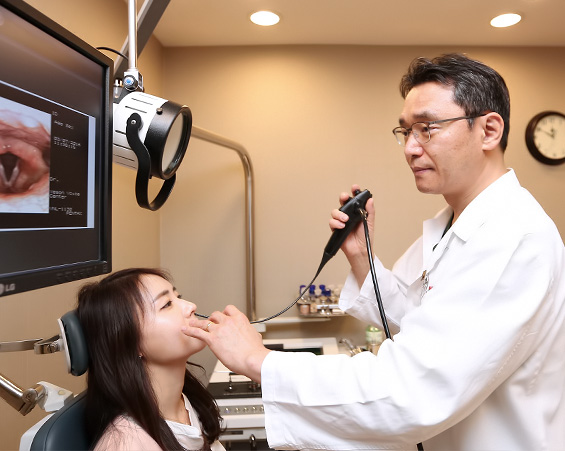 확인하기 위해 코를 통해 후두내시경을 시행하여 질환을 확인합니다.